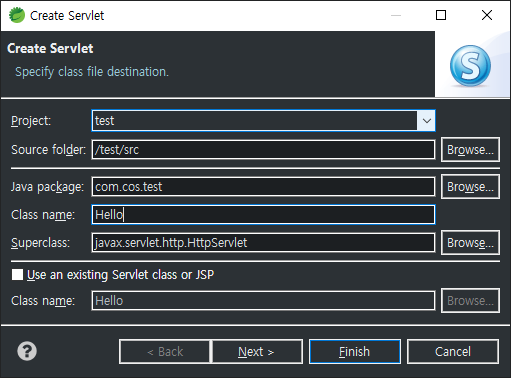 서블릿은 자바와 유사하기 때문에 webcontent에 만드는 것이 아닌 java resource에 만들어야 한다.