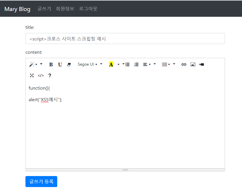 크로스 사이트 스크립팅의 예시를 보자.