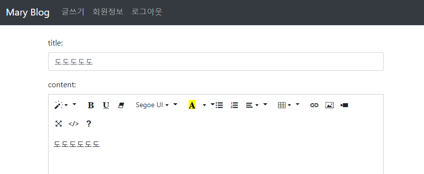 텍스트 입력창에 데이터베이스의 값이 들어온 것을 확인할 수 있다.