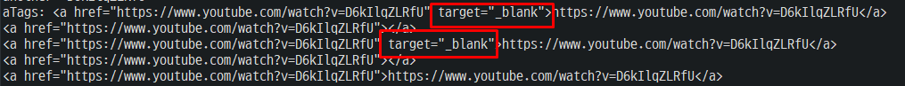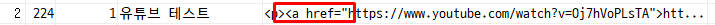 다음처럼 a태그를 합해서 들어가기 때문에 이 값을 그대로 iframe에 넣으면 값을 읽지 못해서 유튜브 영상을 띄울수가 없다.