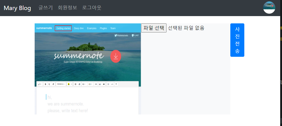파일에 사진을 적용시키려면 먼저 파일을 업로드 해야한다. 이제 섬머노트 같은거 이용 안하고 직접 파일을 올려서 적용시킨다.