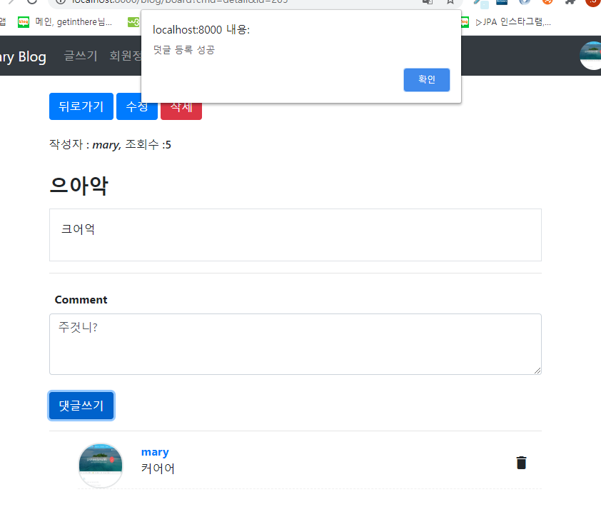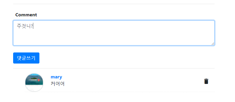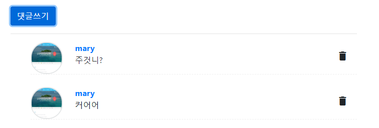 다음처럼 굳이 새로고침 하지 않아도 ajax 통신을 통해 덧글창만 새로 쓰였다.