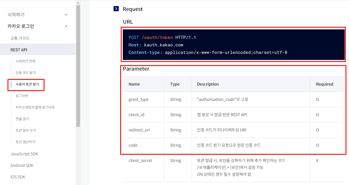 토큰 발급 요청을 할 때는 어떤 파라메터가 필요할까.