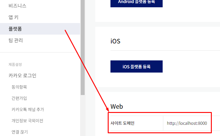 그리고 현재 우리가 사용 중인 것은 웹이므로, 플랫폼에서 웹 도메인을 입력한다.