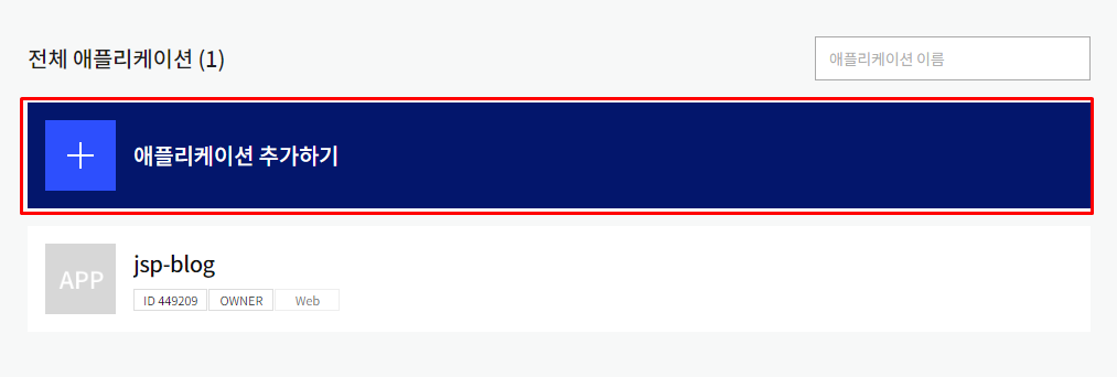 먼저, [내 애플리케이션]으로 접근하여 현재 만들 앱을 등록한다.