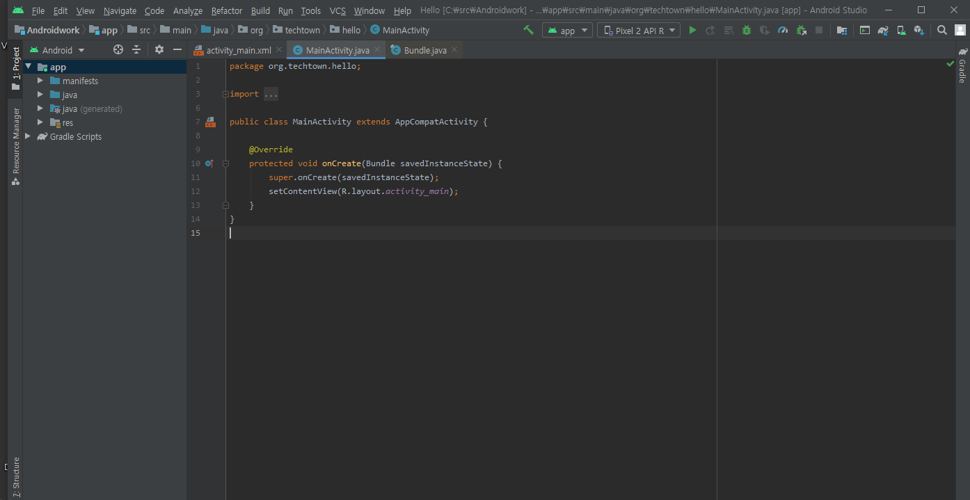 안드로이드 스튜디오를 처음 켜면 다음과 같은 화면을 볼 수 있다.