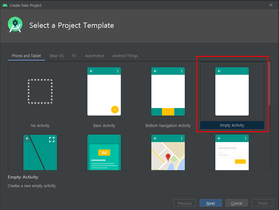 맨 처음 가장 기본적인 화면을 선택하고, 다음을 누른다.