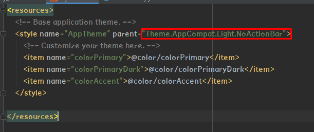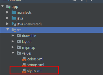이 부분의 default 값은 DarkActionBar 인데, 이 값을 NoActionBar로 변경하면 사라진다.