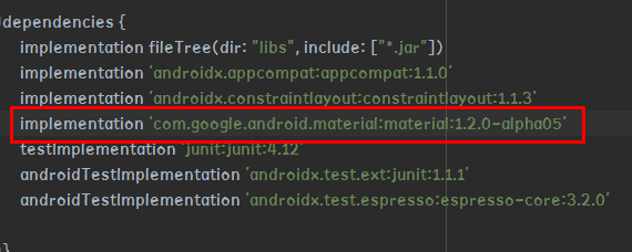 implementation 'com.google.android.material:material:1.2.0-alpha05'