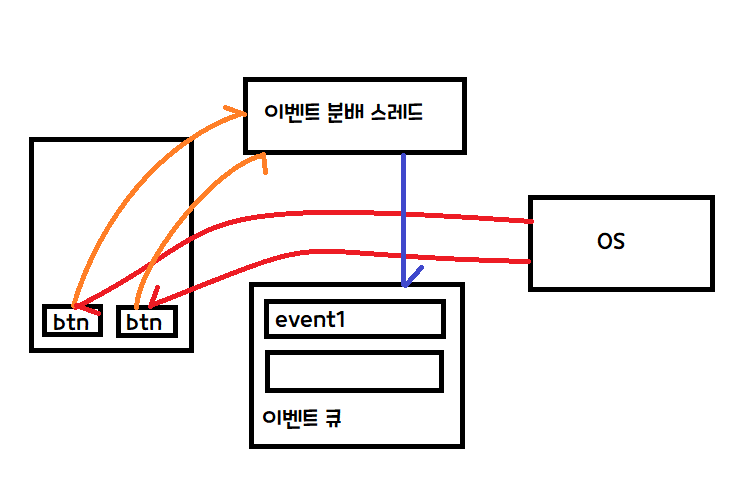 4. 두 가지를 합하여 이벤트 분배 스레드는 이벤트 큐로 이벤트를 전달한다.