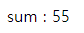 i++=11이 되어 i<11이 거짓이 될 때까지 반복하게 된다. for문이 거짓이 되게 되면, for문을 벗어나 다음 출력문을 통해 sum값이 나타나게 된다.
