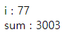 다음은, sum값은 모든 수를 다 더한다. 그러나, for문에서 내려온 값이 if문을 만나고, 나머지가 1이 아닐 경우, continue문을 만나 다시 for의 증감식으로 올라가게 되고, 이 과정으로 인해 나머지가 1인 수만 if문의 거짓으로 인해 조건문을 통과해 sum함수와 마주하게 된다.