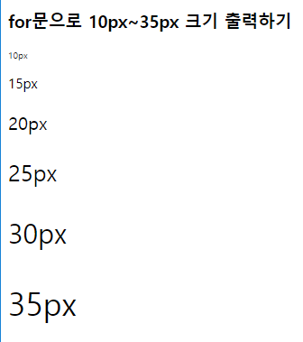 for문을 이용해서 점점 커지는 텍스트를 만들 수 있다.
