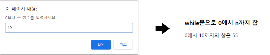 document.writeln("0에서 "+n+"까지의 합은 "+sum);