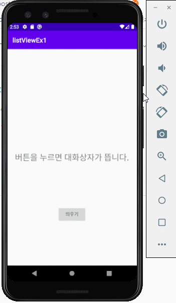 화면 위에 선택창을 띄운다
