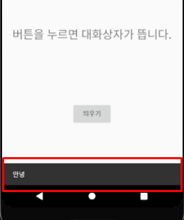 Toast.makeText(this, "안녕", Toast.LENGTH_SHORT).show();