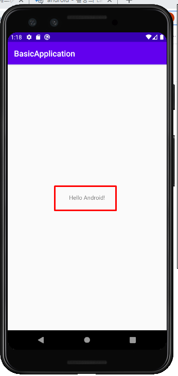 가상단말에 앱을 실행해보면 아래와 같이 Hello World 가 있던 장소에 글씨가 바뀌어있는걸 확인할 수 있다.