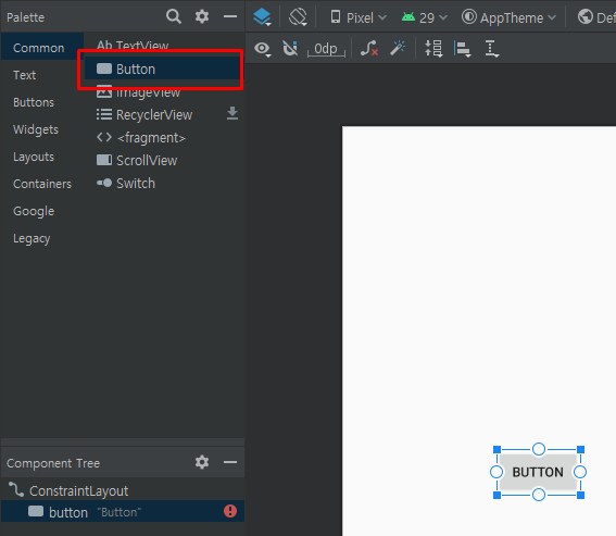 빈 화면에서 Palette탭에서 버튼을 추가한다.