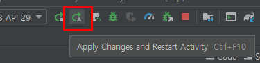 자바코드가 아닌 디자인 XML 코드가 변경될 때는 다음버튼 (HOT FIX) 버튼을 눌러서 실행해도 된다.
