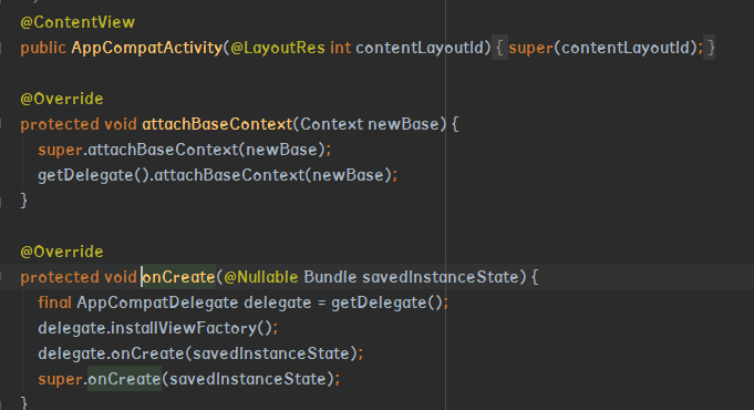 AppCompatActivity가 가지는 onCreate()함수는 이런 형태를 가지고 있다.