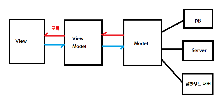 ※ MVVM 모델보다 상위 모델은 Reactive Model이다. 이 모델의 경우 뷰 모델이 데이터베이스를 구독하며, 데이터베이스의 변경 시 바로 뷰 모델이 변화된다. (2번이 자동으로 이루어진다는 뜻임)