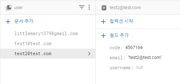 만들어진 코드를 해시맵에 넣고, 그 해시맵을 set해서 값을 부여합니다. 그러면 파이어베이스에 짜쟌, 값이 저장됩니다.