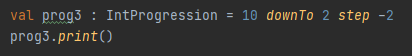 val prog3 : IntProgression = 10 downTo 2 step 2