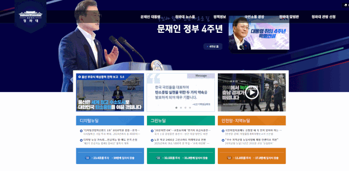 청와대 홈페이지를 본 적 있는 사람(이 많진 않겠지만)은 한번쯤 본 적 있을텐데, 청와대 홈페이지는 스크롤마다 한 섹션씩 이동한다.