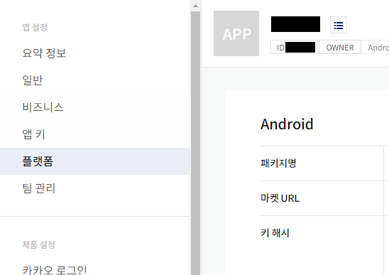 이렇게 앱설정- 플랫폼에 키해시를 입력하면 카카오 로그인 구현하면서