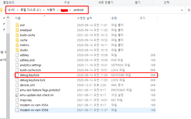 안드로이드 스튜디오는 설치할 때 개발용 키 해시를 하나씩 부여받고 시작합니다. 그럼 개발 키 해시가 어딨겠어요! 안드로이드 파일 내에 있습니다!