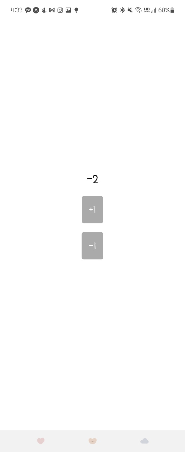 초깃값은 0이며, +1을 하면 값이 +1이 되고, -1 클릭하면 값이 -1씩 된다.