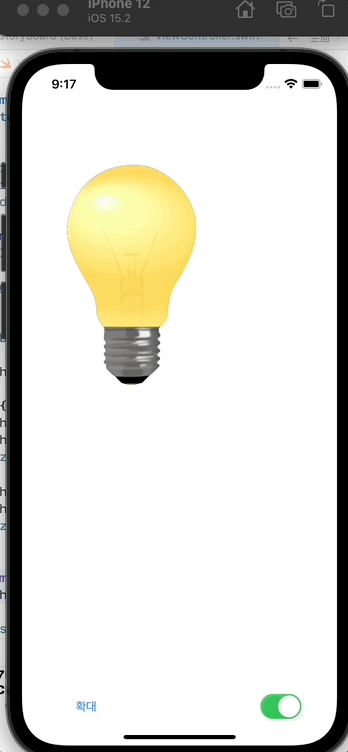 해당 앱은 확대-축소 버튼으로 이미지를 늘리거나 줄이며, 스위치를 통해 전구 이미지를 끄거나 켜는 앱이다.