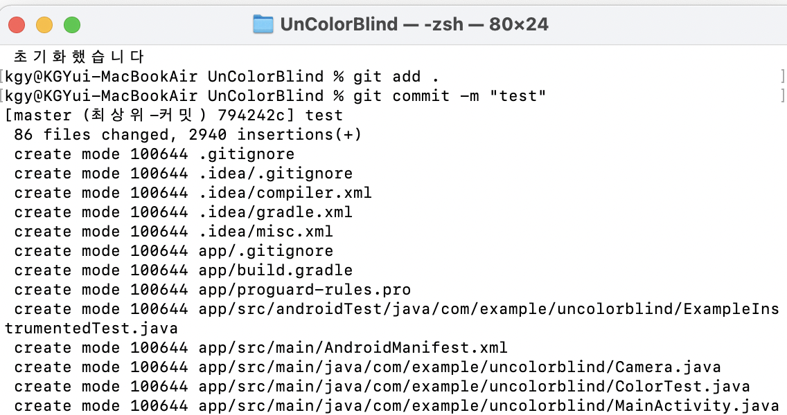 git commit -m "저장하고 싶은 이름 아무거나 해도 돼요. 한글도 됨"