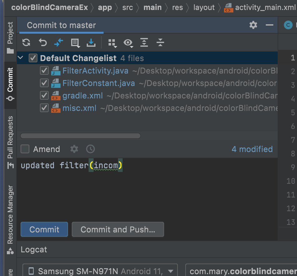 이후에는 안드로이드 스튜디오에서 조금 더 쉽게 다룰 수 있어요. 원래 안드로이드 스튜디오가 초기 깃허브 연결도 지원하긴 하는데, 저는 그게 더 귀찮아서 터미널 방식을 씁니다 ^-^ ... ㅎㅎ..