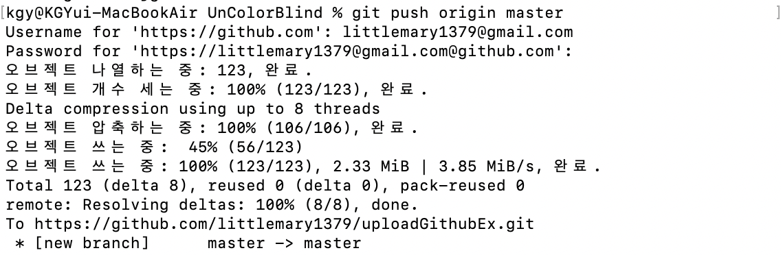 8. 이제 인터넷의 원격 저장소랑 연결 후, 푸시해서 날려줍니다.
