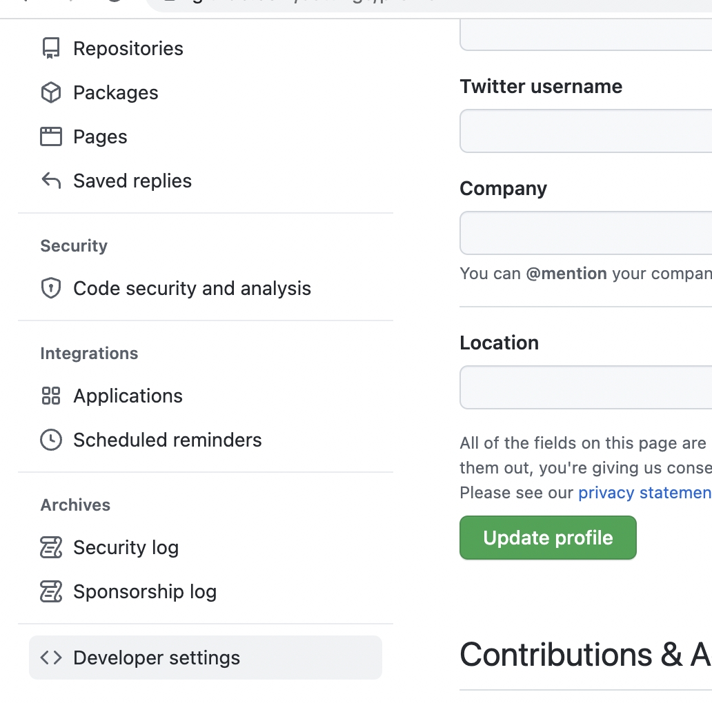 상단의 프로필 사진을 누르면 setting이 있어요. 그걸 클릭하고, 좌측 메뉴 하단에 보면 Developer Setting이라고 있어요.