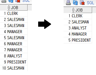 때때로 테이블 내의 데이터는 중복된 값이 있는데, 이를 제거하고 출력할 수도 있다. distinct이다.