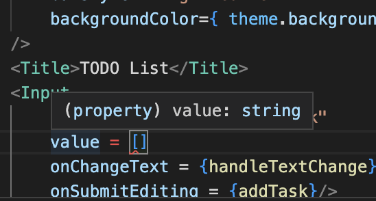 value도 문자열(newTask 값인데, useState에 기본 자료형이 문자열인것이 보인다.)