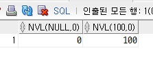 다음과 같이 null은 0으로 치환되었는데에 반해, 100은 그대로 100으로 출력되는 것을 볼 수 있다.